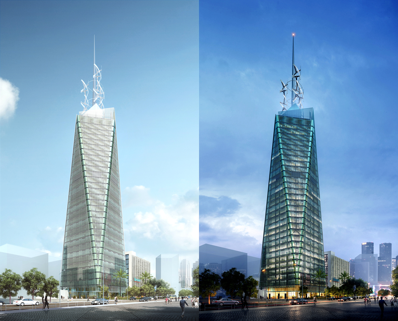 The Centre Tower has a 22m tall spired antenna on the building’s roof that was lifted into place by a helicopter just prior to its completion in 1993.